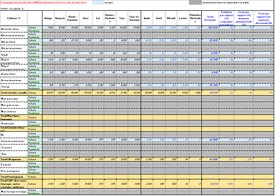 L’augmentation pour la deuxième année consécutive de la sole en colza d’hiver se confirmerait (+13% par rapport à 2025 et +27% par rapport à la moyenne quinquennale) grâce à de bonnes conditions d’implantation et des résultats économiques assez stables.