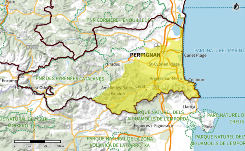 A ce stade toutes les communes des Pyrénées-Orientales placées en zone réglementée sont en zone de surveillance.