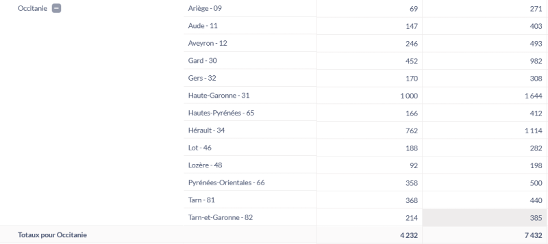 - le second comptabilise le nombre de cantines ("id") inscrites (avec ou sans TD) pour chaque EPCI