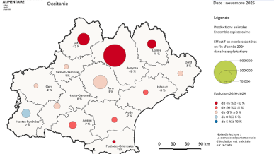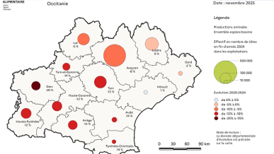 Effectif bovin en fin d’année dans les exploitations en 2024 et évolution entre 2020 et 2024 en (…)